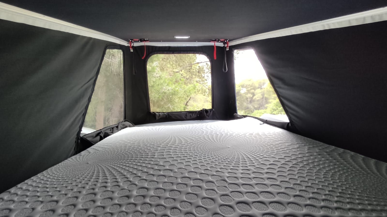 Transformas la furgo en una Camper con cama superior independiente, ideal para viajes largos o en familia.